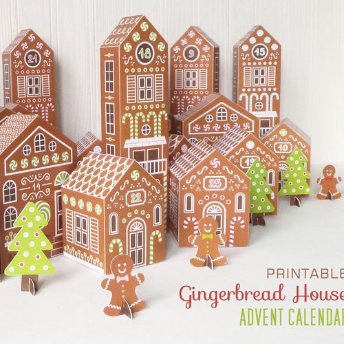 Printable Advent Calendar Gingerbread Houses Diy Paper Etsy